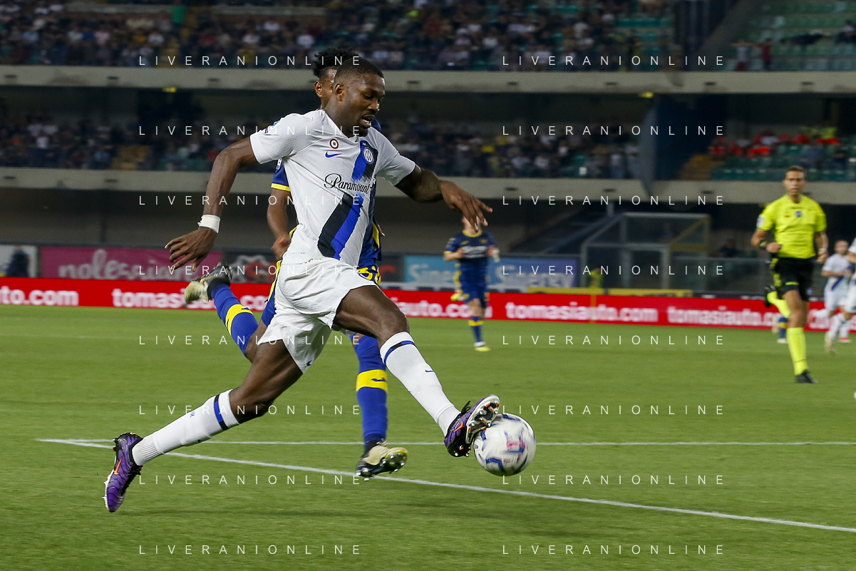 Marcus Thuram of Inter FC play the ball during Hellas Verona FC vs Internazionale FC, 38° Serie A Tim 2023-24 game at Marcantonio Bentegodi Stadium in Verona (VR), Italy, on May 26, 2024. (Photo by Davide Casentini) / AGENZIA ALDO LIVERANI SAS