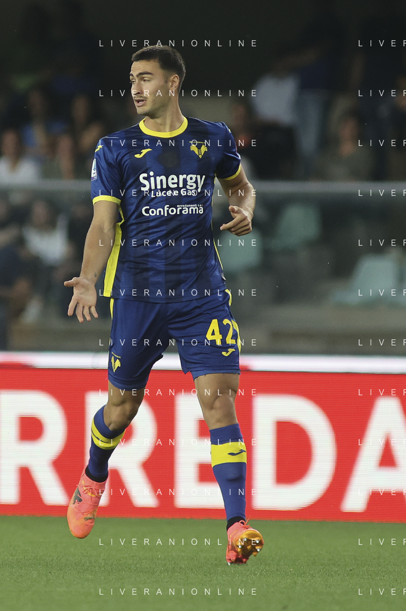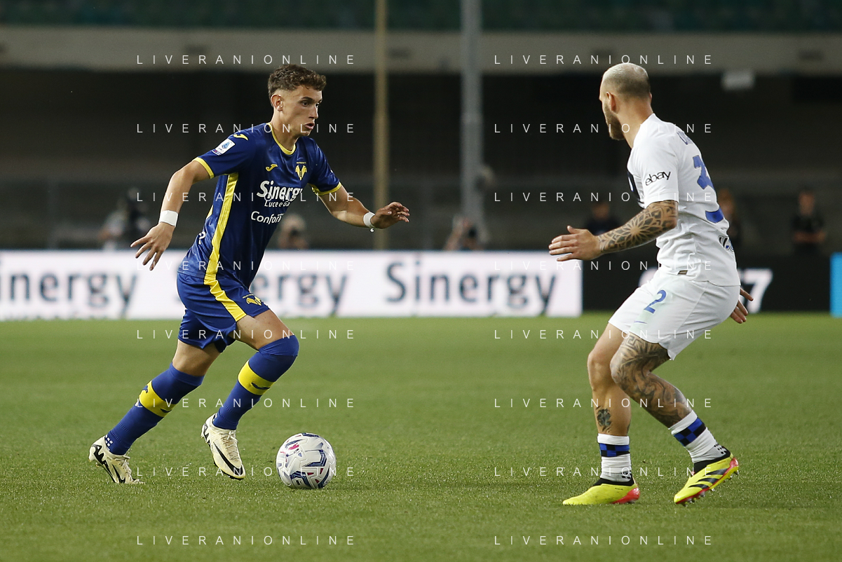 Simone Perilli of Hellas Verona FC during Hellas Verona FC vs Internazionale FC, 38° Serie A Tim 2023-24 game at Marcantonio Bentegodi Stadium in Verona (VR), Italy, on May 26, 2024. (Photo by Davide Casentini) / AGENZIA ALDO LIVERANI SAS