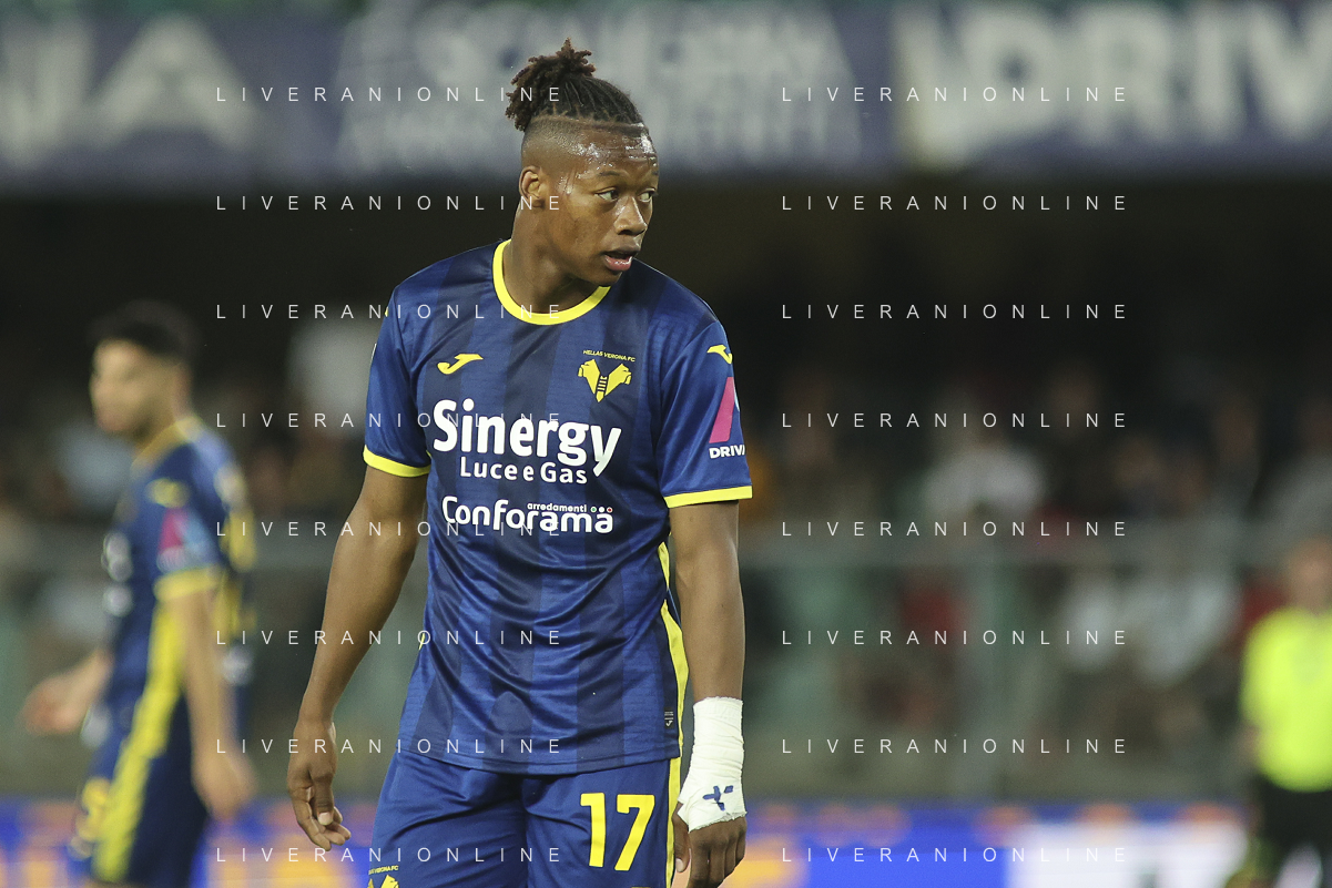Tijjani Noslin of Hellas Verona FC during Hellas Verona FC vs Internazionale FC, 38° Serie A Tim 2023-24 game at Marcantonio Bentegodi Stadium in Verona (VR), Italy, on May 26, 2024. (Photo by Davide Casentini) / AGENZIA ALDO LIVERANI SAS