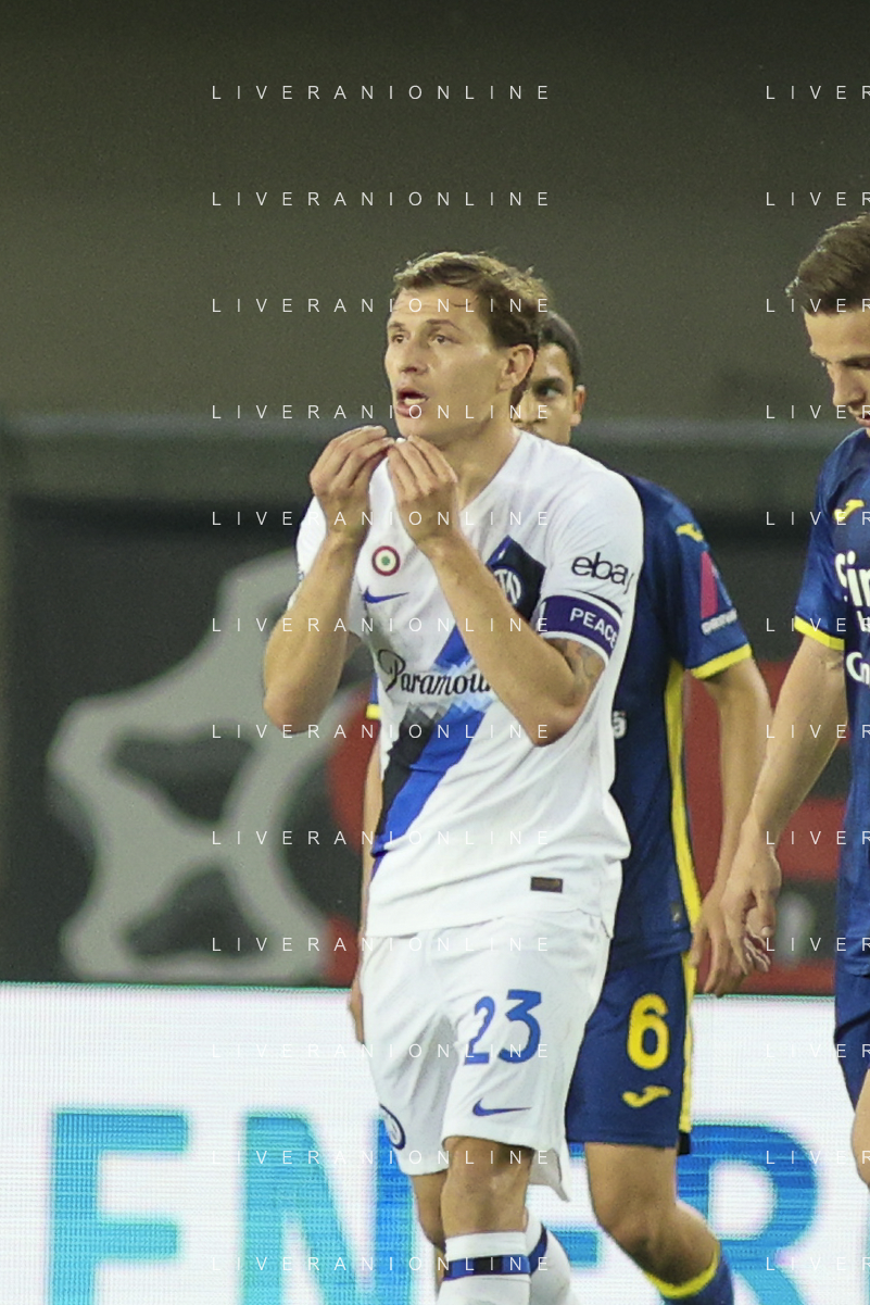 Nicolò Barella of Inter FC gestures during Hellas Verona FC vs Internazionale FC, 38° Serie A Tim 2023-24 game at Marcantonio Bentegodi Stadium in Verona (VR), Italy, on May 26, 2024. (Photo by Davide Casentini) / AGENZIA ALDO LIVERANI SAS