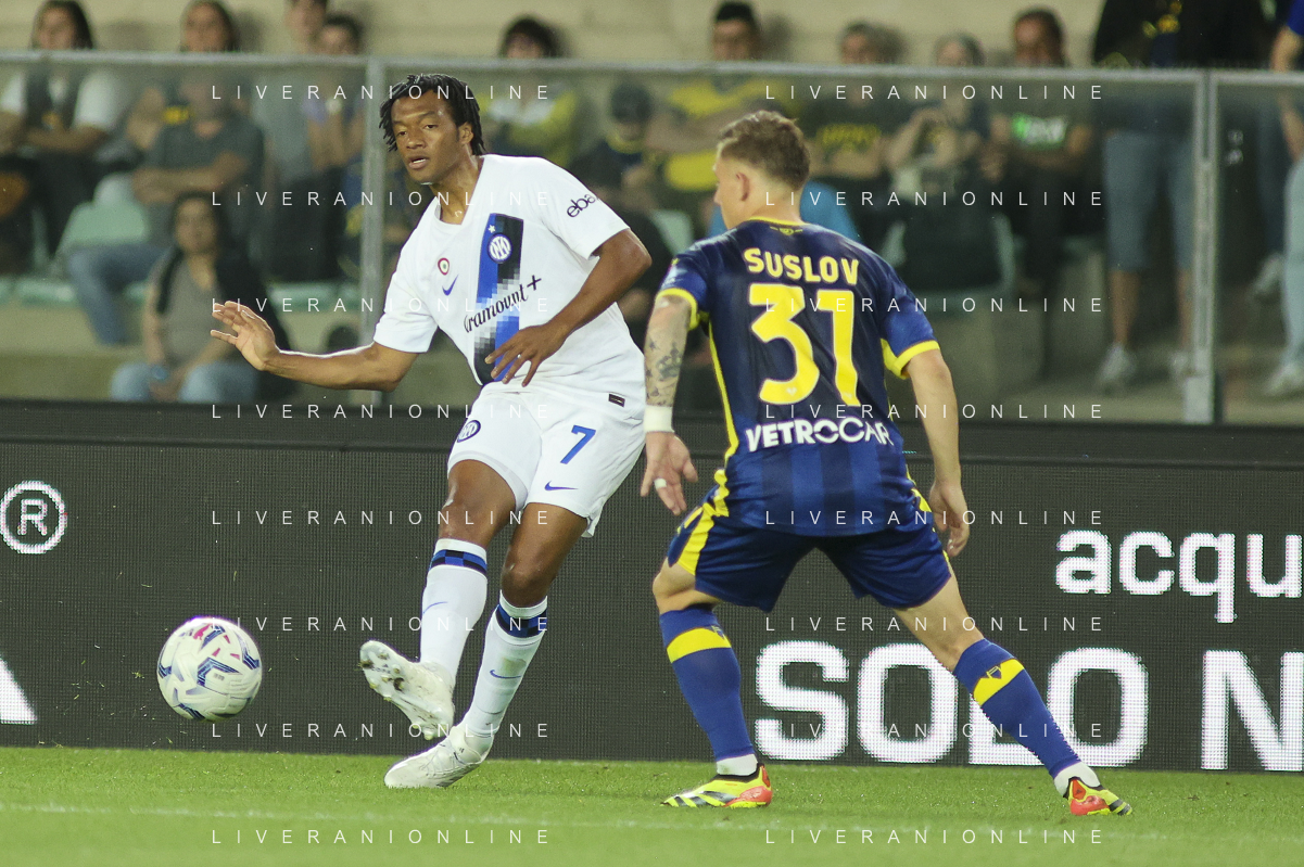 Juan Cuadrado of Inter FC play the ball during Hellas Verona FC vs Internazionale FC, 38° Serie A Tim 2023-24 game at Marcantonio Bentegodi Stadium in Verona (VR), Italy, on May 26, 2024. (Photo by Davide Casentini) / AGENZIA ALDO LIVERANI SAS