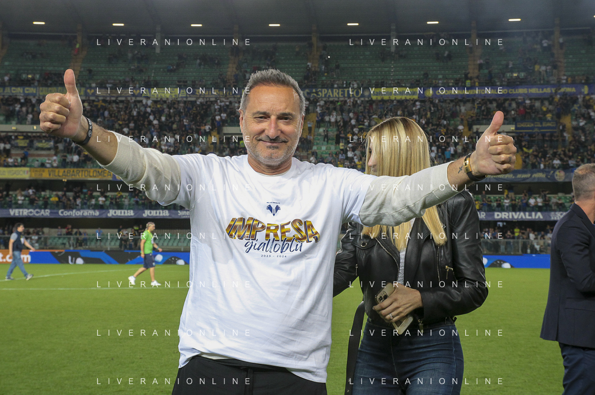 Maurizio Setti Chairman of Hellas Verona FC celebrate the end of season Hellas Verona FC vs Internazionale FC, 38° Serie A Tim 2023-24 game at Marcantonio Bentegodi Stadium in Verona (VR), Italy, on May 26, 2024. (Photo by Davide Casentini) / AGENZIA ALDO LIVERANI SAS