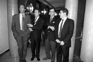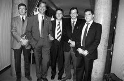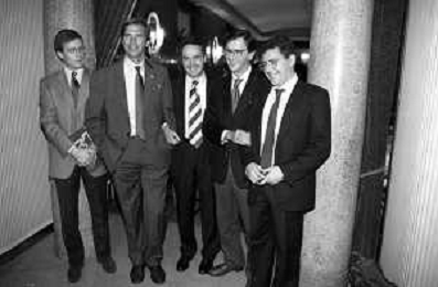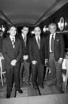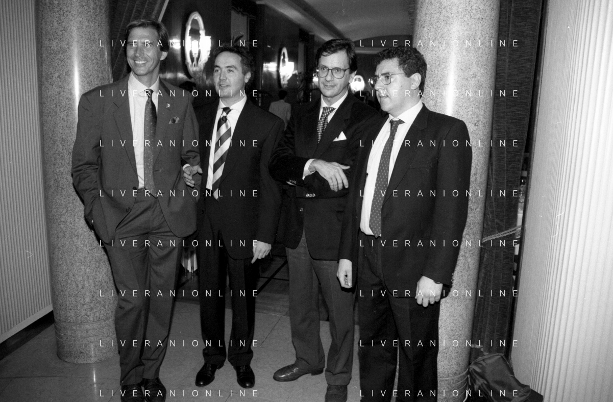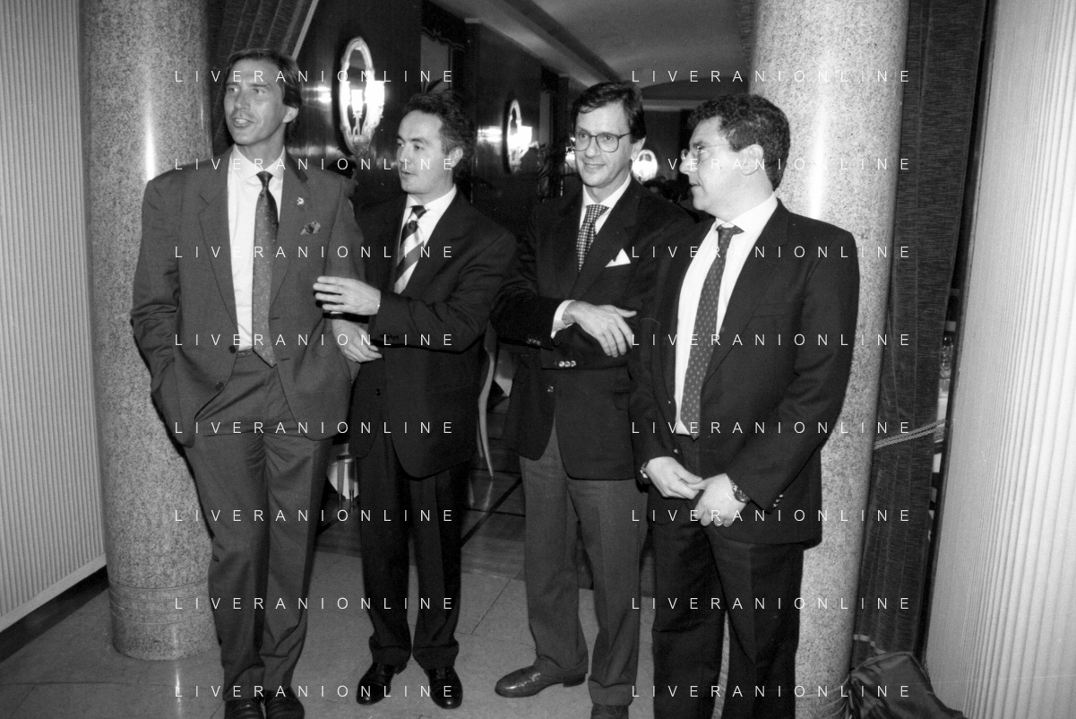 Neg- SERATA DEDICATA AL CICLISMO TRASMESSA SU ITALIA1 NELL'ANNO 1993 - RETROSPETTIVA Nella foto IL GIORNALISTA SPORTIVO DAVIDE DE ZAN E MASSIMO DE LUCA CON ADRIANO GALLIANI E CESARE CADEO AG ALDO LIVERANI SAS