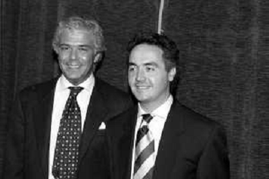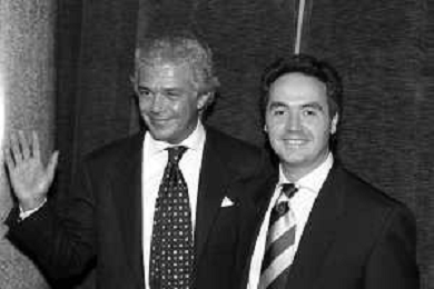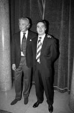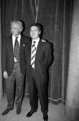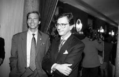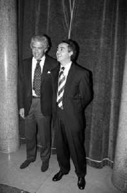 Neg- SERATA DEDICATA AL CICLISMO TRASMESSA SU ITALIA1 NELL'ANNO 1993 - RETROSPETTIVA Nella foto IL GIORNALISTA SPORTIVO DAVIDE DE ZAN CON CESARE CADEO AG ALDO LIVERANI SAS