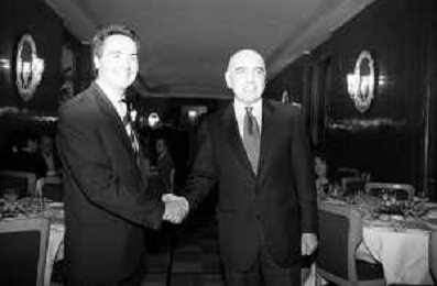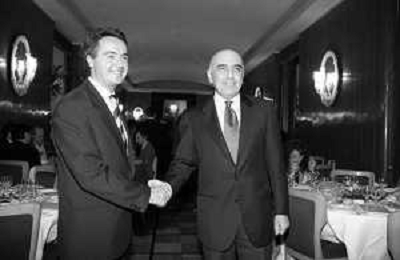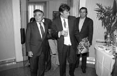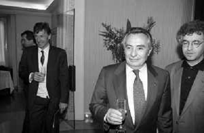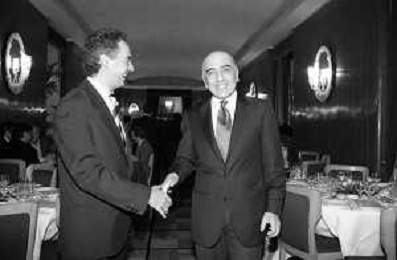 Neg- SERATA DEDICATA AL CICLISMO TRASMESSA SU ITALIA1 NELL'ANNO 1993 - RETROSPETTIVA Nella foto IL DIRETTORE DELLA GAZZETTA DELLO SPORT CANDIDO CANNAVO' CON IL CICLISTA FRANCESCO MOSER AG ALDO LIVERANI SAS