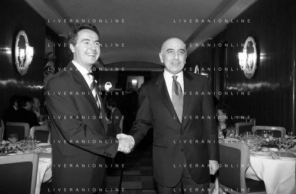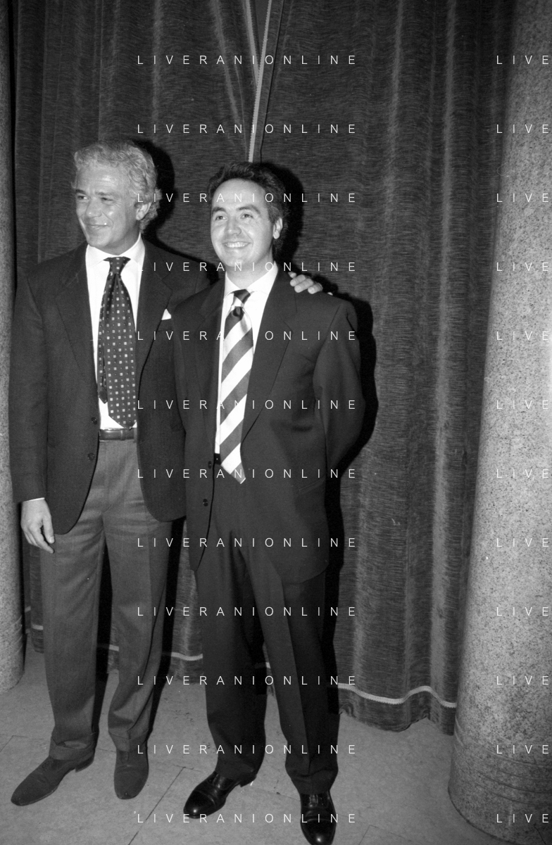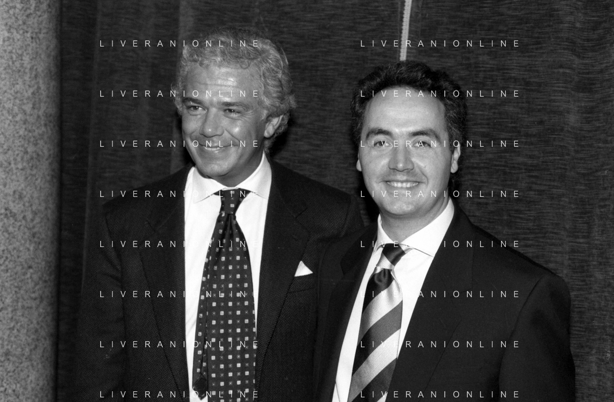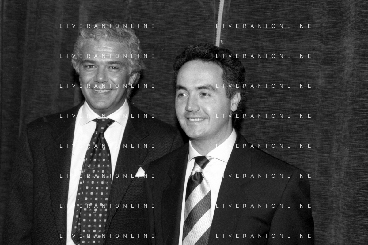 Neg- SERATA DEDICATA AL CICLISMO TRASMESSA SU ITALIA1 NELL'ANNO 1993 - RETROSPETTIVA Nella foto IL GIORNALISTA SPORTIVO DAVIDE DE ZAN CON ADRIANO GALLIANI AG ALDO LIVERANI SAS