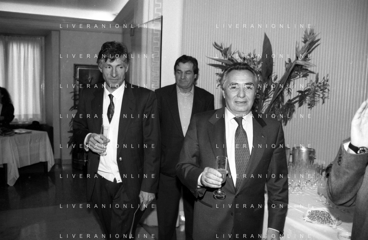 Neg- SERATA DEDICATA AL CICLISMO TRASMESSA SU ITALIA1 NELL'ANNO 1993 - RETROSPETTIVA Nella foto IL GIORNALISTA SPORTIVO GIACOMO CROSA CON MASSIMO DE LUCA AG ALDO LIVERANI SAS
