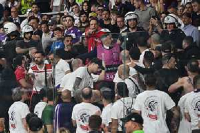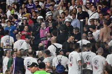 TVRG Olympiacos vs Fiorentina nella foto tensione sugli spalti a fine primo tempo Atene (GRE) 29-05-2024 AEK Arena Finale UEFA Conference League foto Roberto Garavaglia/Agenzia Aldo Liverani sas / AGENZIA ALDO LIVERANI SAS