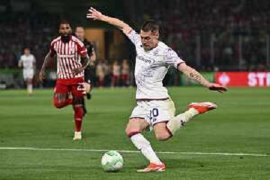 TVRG Olympiacos vs Fiorentina nella foto Christian Kouame' (Fiorentina) Atene (GRE) 29-05-2024 AEK Arena Finale UEFA Conference League foto Roberto Garavaglia/Agenzia Aldo Liverani sas / AGENZIA ALDO LIVERANI SAS