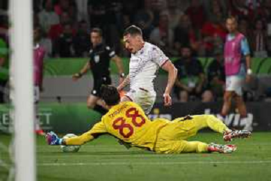 TVRG Olympiacos vs Fiorentina nella foto Christian Kouame' (Fiorentina) occasione da gol Atene (GRE) 29-05-2024 AEK Arena Finale UEFA Conference League foto Roberto Garavaglia/Agenzia Aldo Liverani sas / AGENZIA ALDO LIVERANI SAS