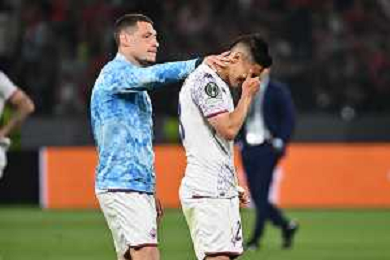 TVRG Olympiacos vs Fiorentina nella foto delusione Andrea Belotti (Fiorentina) e Lucas Martinez Quarta (Fiorentina) Atene (GRE) 29-05-2024 AEK Arena Finale UEFA Conference League foto Roberto Garavaglia/Agenzia Aldo Liverani sas / AGENZIA ALDO LIVERANI SAS