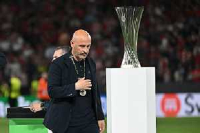 TVRG Olympiacos vs Fiorentina nella foto Josè Luis Mendilibar allenatore Olympiakos Atene (GRE) 29-05-2024 AEK Arena Finale UEFA Conference League foto Roberto Garavaglia/Agenzia Aldo Liverani sas
