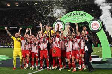 TVRG Olympiacos vs Fiorentina nella foto premiazione Olympiacos Atene (GRE) 29-05-2024 AEK Arena Finale UEFA Conference League foto Roberto Garavaglia/Agenzia Aldo Liverani sas / AGENZIA ALDO LIVERANI SAS