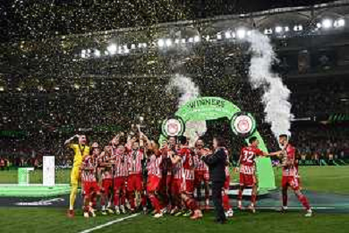 TVRG Olympiacos vs Fiorentina nella foto esultanza Olympiakos dopo il gol dell'1 a 0 Atene (GRE) 29-05-2024 AEK Arena Finale UEFA Conference League foto Roberto Garavaglia/Agenzia Aldo Liverani sas / AGENZIA ALDO LIVERANI SAS