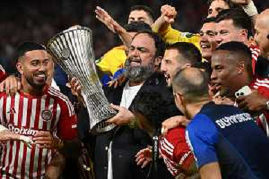 TVRG Olympiacos vs Fiorentina nella foto Evangelos Marinakis presidente Olympiacos Atene (GRE) 29-05-2024 AEK Arena Finale UEFA Conference League foto Roberto Garavaglia/Agenzia Aldo Liverani sas