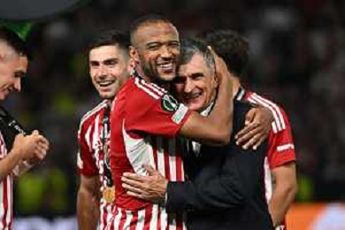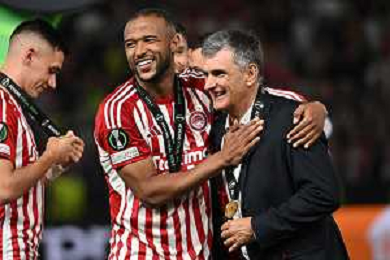 TVRG Olympiacos vs Fiorentina nella foto Ayoub El Kaabi (Olympiakos) SX e Josè Luis Mendilibar allenatore Olympiakos DX Atene (GRE) 29-05-2024 AEK Arena Finale UEFA Conference League foto Roberto Garavaglia/Agenzia Aldo Liverani sas