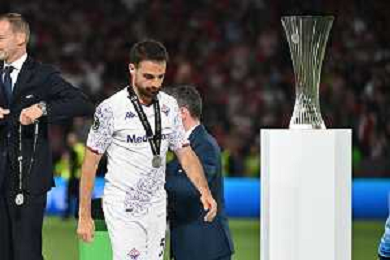 TVRG Olympiacos vs Fiorentina nella foto delusione Cristiano Biraghi (Fiorentina) Atene (GRE) 29-05-2024 AEK Arena Finale UEFA Conference League foto Roberto Garavaglia/Agenzia Aldo Liverani sas / AGENZIA ALDO LIVERANI SAS