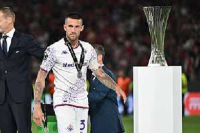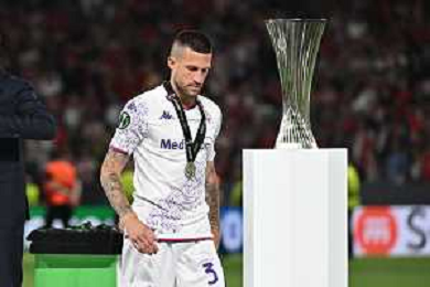 TVRG Olympiacos vs Fiorentina nella foto Cristiano Biraghi (Fiorentina) Atene (GRE) 29-05-2024 AEK Arena Finale UEFA Conference League foto Roberto Garavaglia/Agenzia Aldo Liverani sas