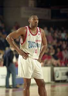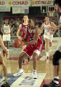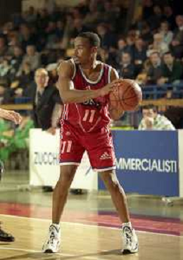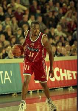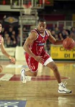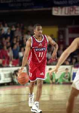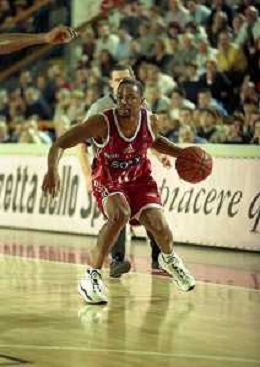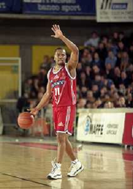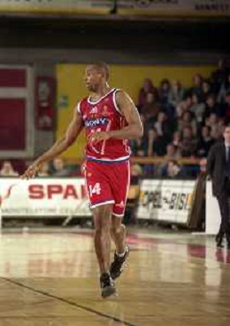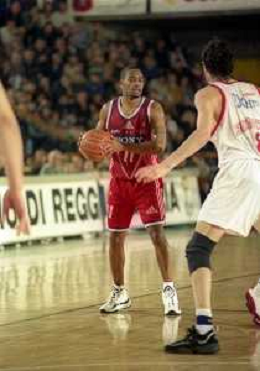 NEG-03-01-1999 REGGIO EMILIA CAMPIONATO DI BASKET SERIE A 1 ZUCCHETTI SOFTWARE REGGIO EMILIA-SONY MILANO NELLA FOTO DEMARCO JOHNSON AG ALDO LIVERANI SAS