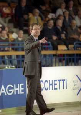 NEG-03-01-1999 REGGIO EMILIA CAMPIONATO DI BASKET SERIE A 1 ZUCCHETTI SOFTWARE REGGIO EMILIA-SONY MILANO NELLA FOTO GIANFRANCO LOMABARDI ALLENATORE ZUCCHETTI REGGIO EMILIA AG ALDO LIVERANI SAS