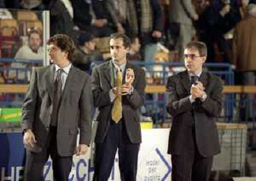 NEG-03-01-1999 REGGIO EMILIA CAMPIONATO DI BASKET SERIE A 1 ZUCCHETTI SOFTWARE REGGIO EMILIA-SONY MILANO NELLA FOTO MASSIMILIANO MENETTI ASSISTENTE REGGIO EMILIA ZUCCHETTI AG ALDO LIVERANI SAS