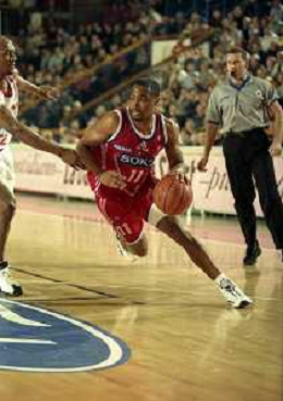 NEG-03-01-1999 REGGIO EMILIA CAMPIONATO DI BASKET SERIE A 1 ZUCCHETTI SOFTWARE REGGIO EMILIA-SONY MILANO NELLA FOTO MELVIN BOOKER AG ALDO LIVERANI SAS