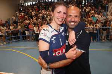 IMOLA 01 06 2024 CLAI IMOLA PALLAVOLO-VILLA CORTESE FINALE PLAY OFF B1 3-0 PROMOZIONE IN A2 NELLA FOTO ILENIA CAMMISA E NELLO CALIENDO ALLENATTORE IMOLA FOTO GIANNI SANNA-AG ALDO LIVERANI SAS