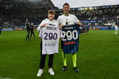 TVRG Atalanta vs Fiorentina nella foto omaggio all'arbitro Daniele Orsato di Schio (VI), qui insieme al figlio Bergamo 02-06-2024 Gewiss Stadium Campionato Serie A TIM - recupero della 29a giornata foto Roberto Garavaglia/Agenzia Aldo Liverani sas/ AGENZIA ALDO LIVERANI SAS