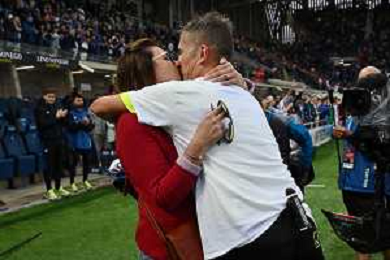 TVRG Atalanta vs Fiorentina nella foto omaggio all'arbitro Daniele Orsato di Schio (VI), il bacio alla moglie Bergamo 02-06-2024 Gewiss Stadium Campionato Serie A TIM - recupero della 29a giornata foto Roberto Garavaglia/Agenzia Aldo Liverani sas/ AGENZIA ALDO LIVERANI SAS