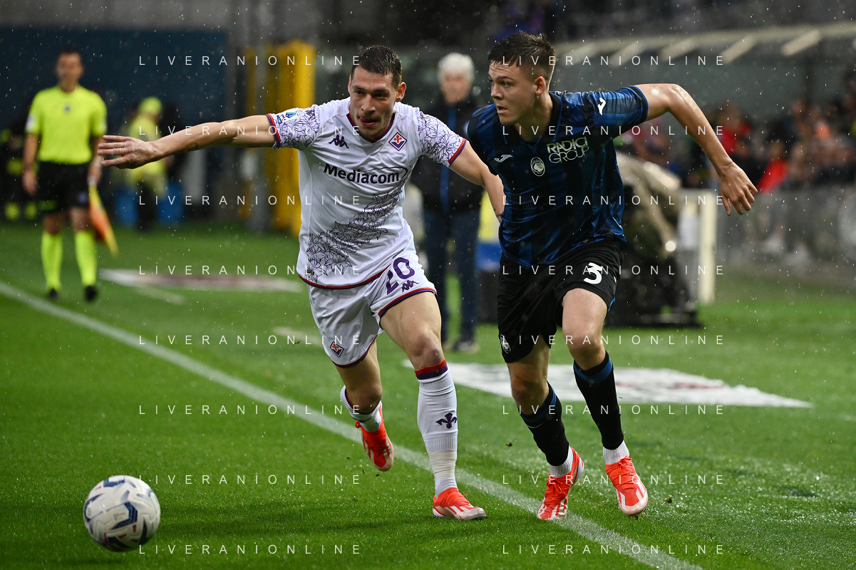 TVRG Atalanta vs Fiorentina nella foto Andrea Belotti (Fiorentina) e Emil Holm (Atalanta) Bergamo 02-06-2024 Gewiss Stadium Campionato Serie A TIM - recupero della 29a giornata foto Roberto Garavaglia/Agenzia Aldo Liverani sas / AGENZIA ALDO LIVERANI SAS