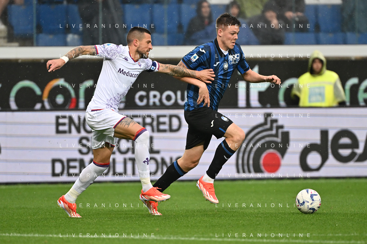 TVRG Atalanta vs Fiorentina nella foto Cristiano Biraghi (Fiorentina) e Emil Holm (Atalanta) Bergamo 02-06-2024 Gewiss Stadium Campionato Serie A TIM - recupero della 29a giornata foto Roberto Garavaglia/Agenzia Aldo Liverani sas / AGENZIA ALDO LIVERANI SAS