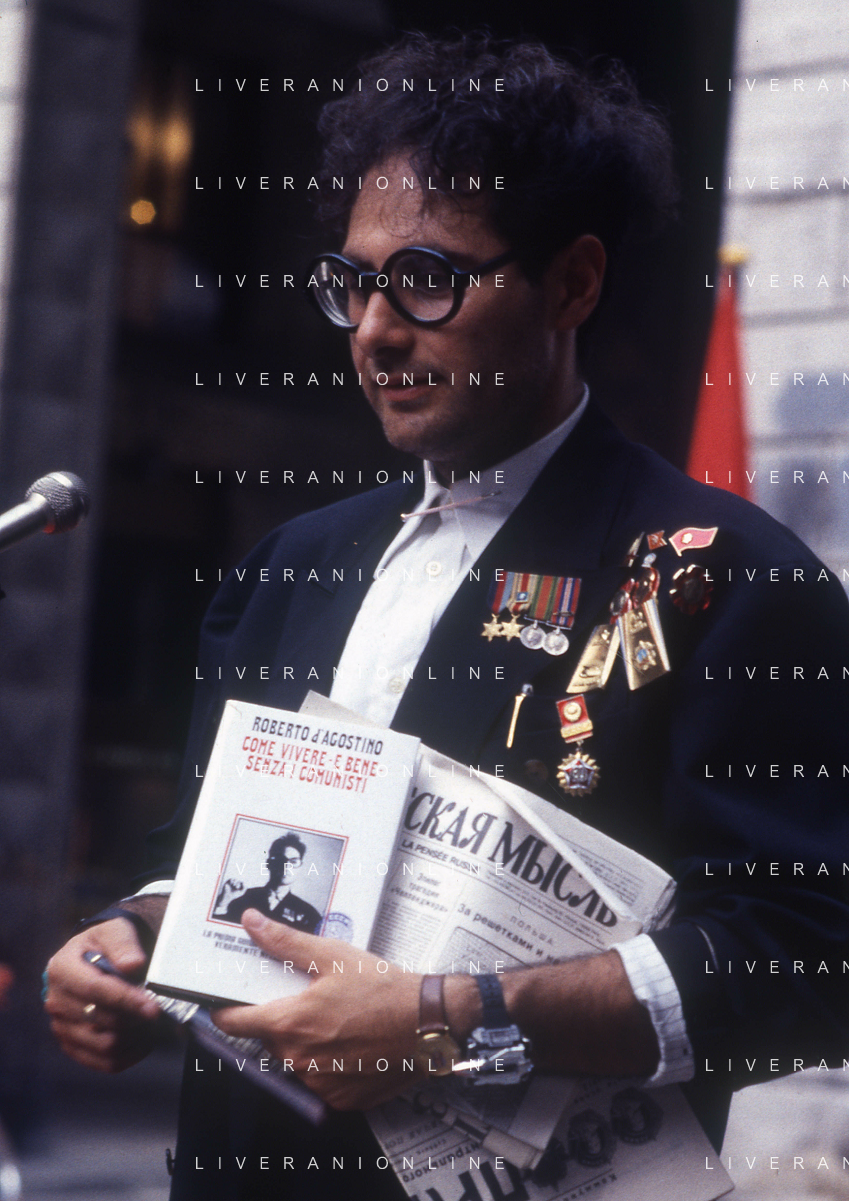 DIAP- RETROSPETTIVA ROBERTO D'AGOSTINO GIORNALISTA-OPINIONISTA PERSONAGGIO TELEVISIVO NELLA FOTO ROBERTO D'AGOSTINO NELL'ANNO 1987 CON IL SUO LIBRO “COME VIVERE BENE E SENZA I COMUNISTI“ AG ALDO LIVERANI SAS