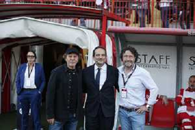 Renzo Rosso Presidente Vicenza, Matteo Marani Presidente Lega Serie C e Fabio Oppicelli Presidente Carrarese during L.R. Vicenza vs Carrarese Calcio, 1° Final Playoff Serie C 2023-24 game at Romeo Menti Stadium in Vicenza (VI), Italy, on June 05, 2024. (Photo by Davide Casentini)/ AGENZIA ALDO LIVERANI SAS