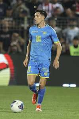 Niccolò Belloni of Carrarese Calcio play the ball during L.R. Vicenza vs Carrarese Calcio, 1° Final Playoff Serie C 2023-24 game at Romeo Menti Stadium in Vicenza (VI), Italy, on June 05, 2024. (Photo by Davide Casentini)/ AGENZIA ALDO LIVERANI SAS