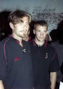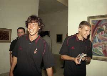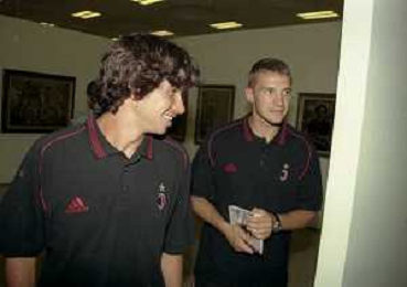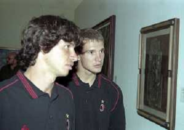 NEG-26-07-1999 MILANO PALAZZO DELLA PERMANENTE MOSTRA SUI 100 ANNI AC MILAN CALCIO NELLA FOTO DEMETRIO ALBERTINI CON ANDRIY SHEVCHENKO AG ALDO LIVERANI SAS