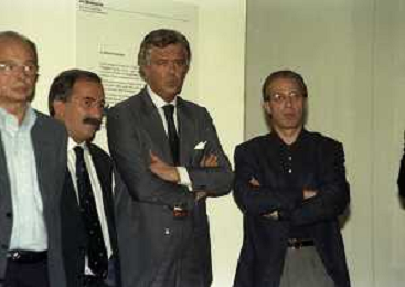 NEG-26-07-1999 MILANO PALAZZO DELLA PERMANENTE MOSTRA SUI 100 ANNI AC MILAN CALCIO NELLA FOTO BURGARETTA LINO-CESARE CADEOE PAOLO BERLUSCONI AG ALDO LIVERANI SAS