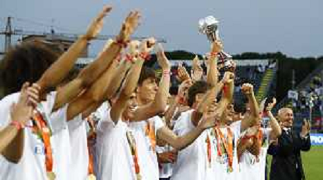 ZCP - Empoli 10/06/2024 - ITALIA vs BOSNIA ED ERZEGOVINA gara amichevole precampionato Europeo Uefa Euro 2024 -nella foto: la nazionale italiana under 17 con la coppa - campioni d'europa con il trofeo ©Claudio Zamagni/Agenzia Aldo Liverani /AGENZIA ALDO LIVERANI SAS