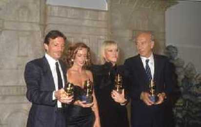 DIAP-RETROSPETTIVA GIULIANO MONTALDO REGISTA NELLA FOTO GIULIANO MONTALDO NELL'ANNO 1982 CON GIULIANA DE SIO E UMBERTO ORSINI ALLA PREMIAZIONE DELLE GROLLE D'ORO AG ALDO LIVERANI SAS