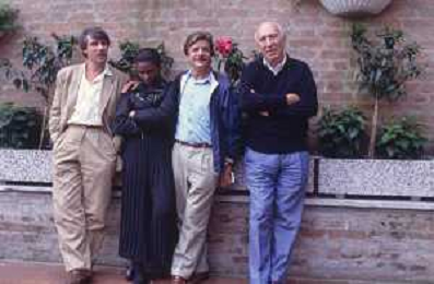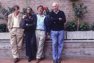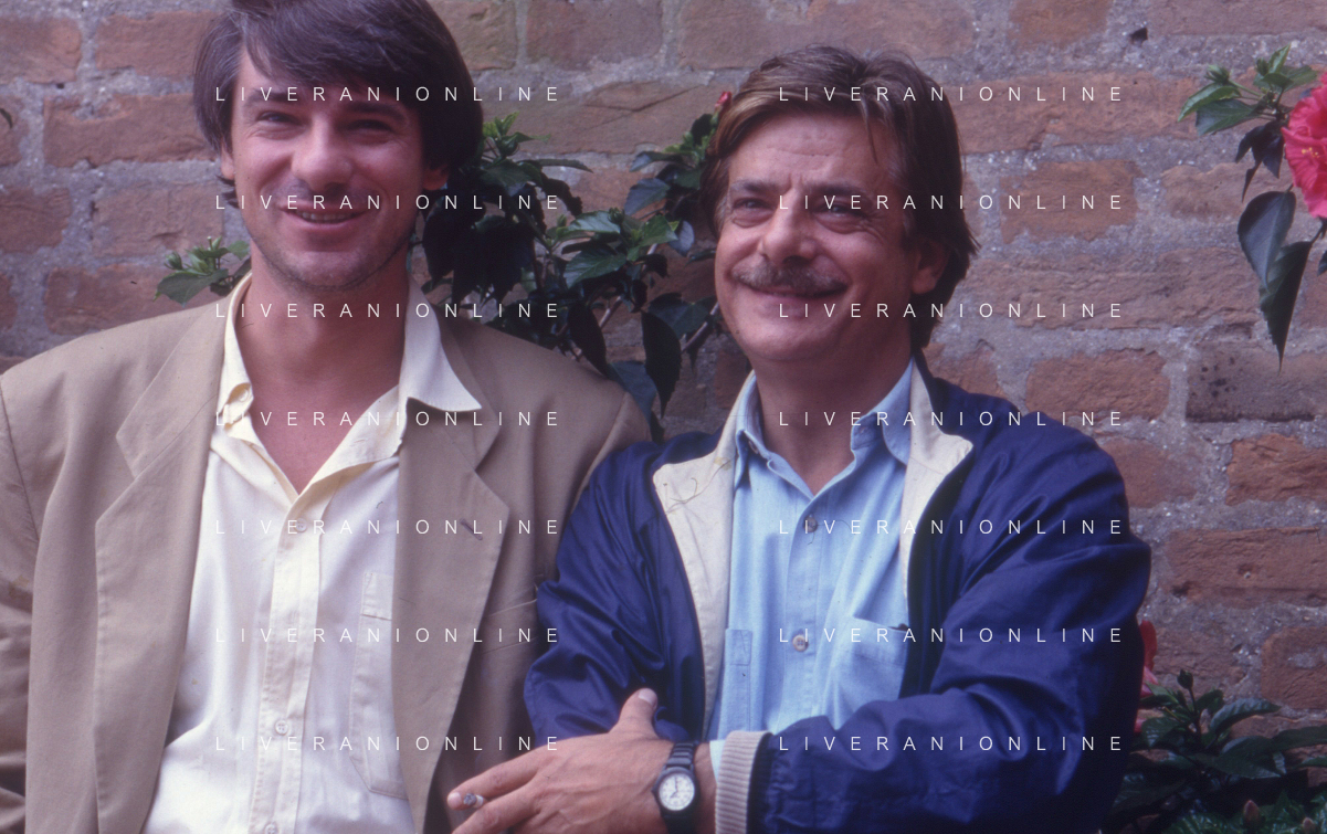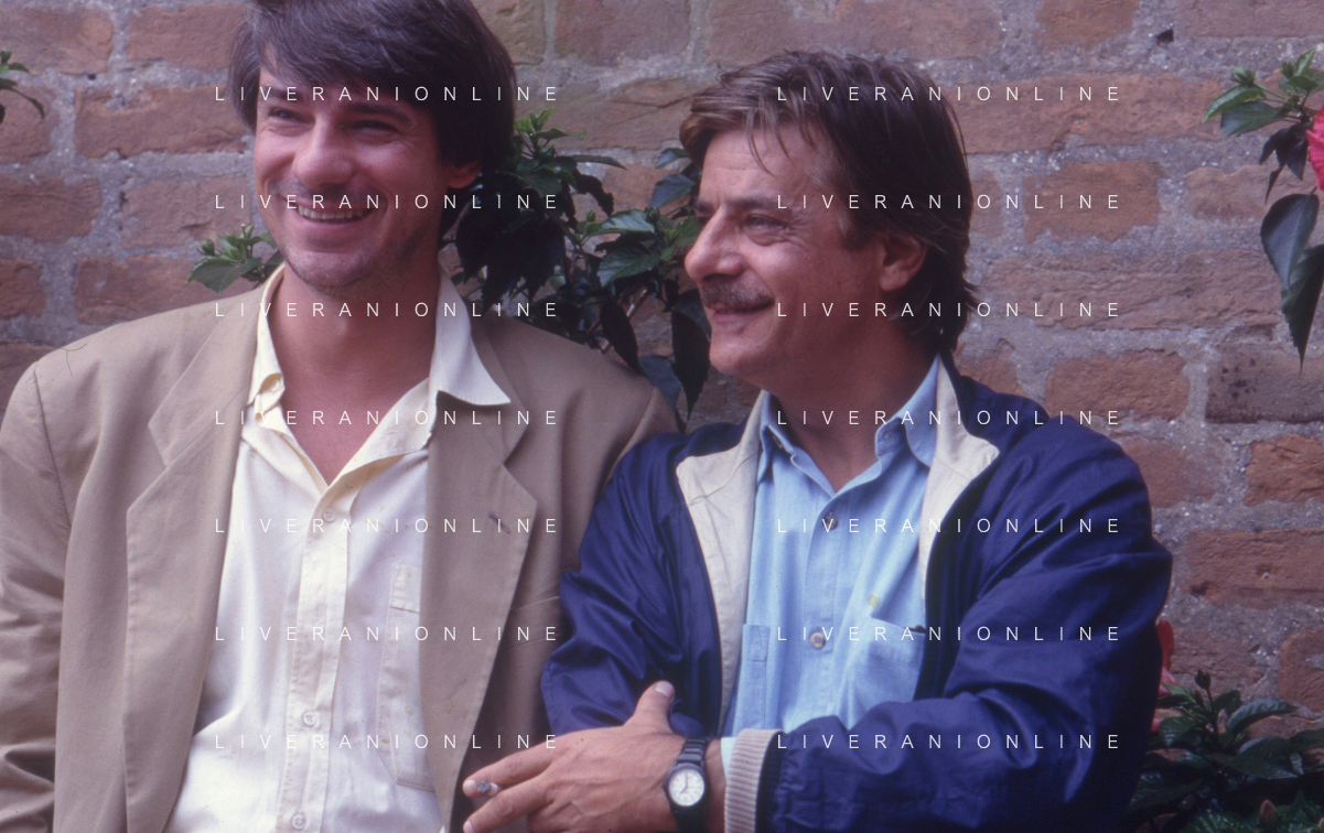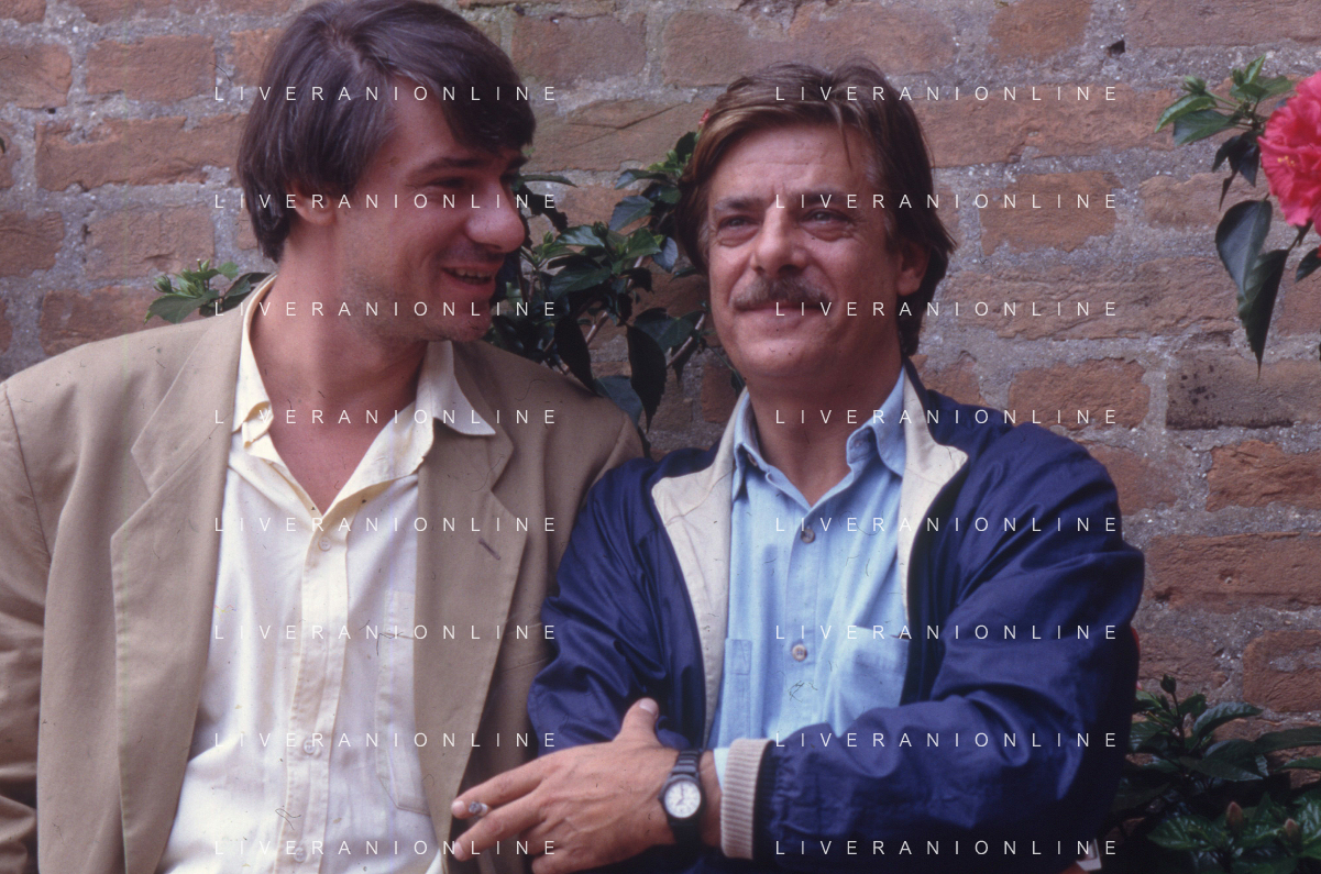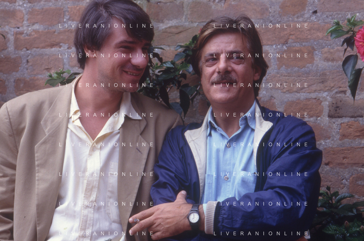 DIAP-RETROSPETTIVA RICKY TOGNAZZI ATTORE NELLA FOTO RICKY TOGNAZZI A VENEZIA NELL'ANNO 1989 CON GIULIANO MONTALDO-GIANCARLO GIANNINI E P.FLORA PRAXO AG ALDO LIVERANI SAS