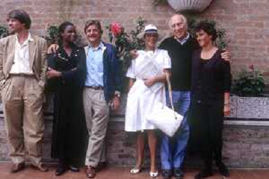 DIAP-RETROSPETTIVA GIULIANO MONTALDO REGISTA NELLA FOTO GIULIANO MONTALDO CON RICKY TOGNAZZI- -GIANCARLO GIANNINI E P. FLORA PRAXO A VENEZIA NELL'ANNO 1989 FOTO DAVIDE MANDRINI-AG ALDO LIVERANI SAS