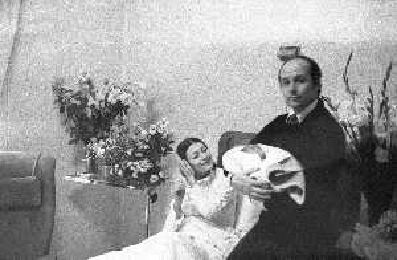 NEG-RETROSPETTIVA CARLA FRACCI BALLERINA NELLA FOTO CARLA FRACCI CON IL MARITO IN OSPEDALE PER LA NASCITA DEL FIGLIO NELL'ANNO 1969 A MILANO AG ALDO LIVERANI SAS