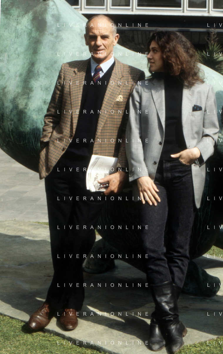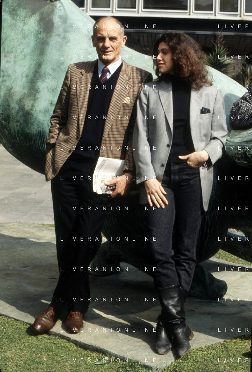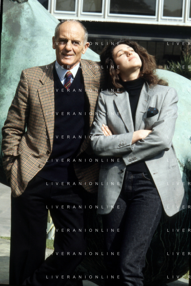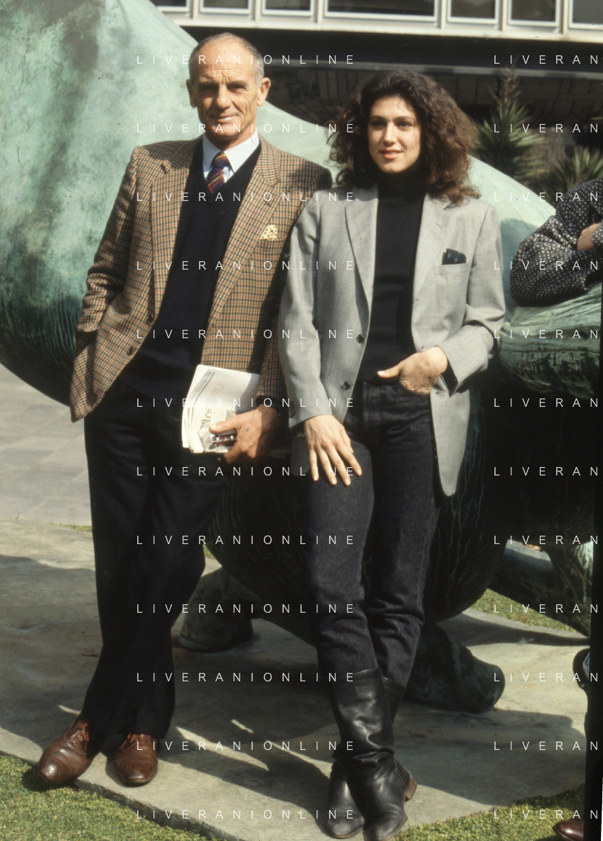 DIAP-RETROSPETTIVA PHILIPPE LEROY ATTORE NELLA FOTO PHILIPPE LEROY CON ALBA MOTTURA-PRESENTAZIONE IN RAI A ROMA DEL FILM“DUE ASSI PER UN TURBO“ ANNO 1987 FOTO EDGARDO DELLA SCORCIOSA-AG ALDO LIVERANI SAS