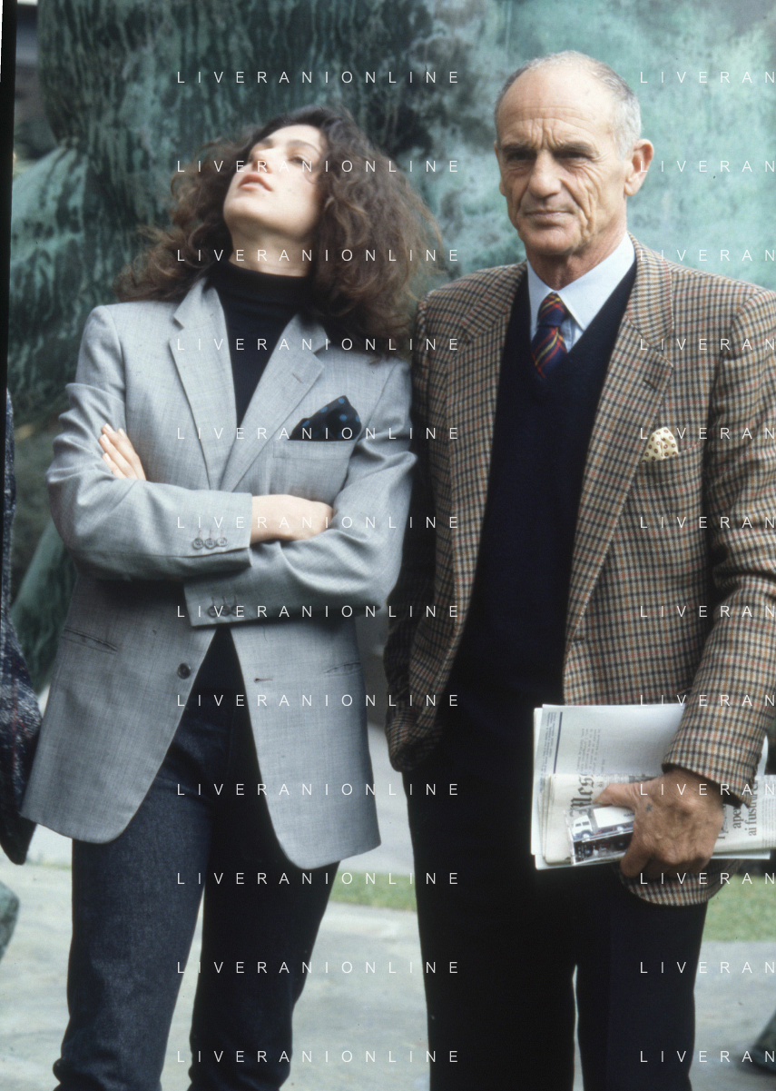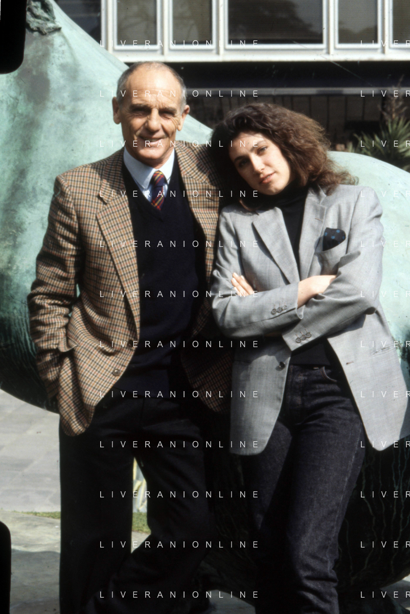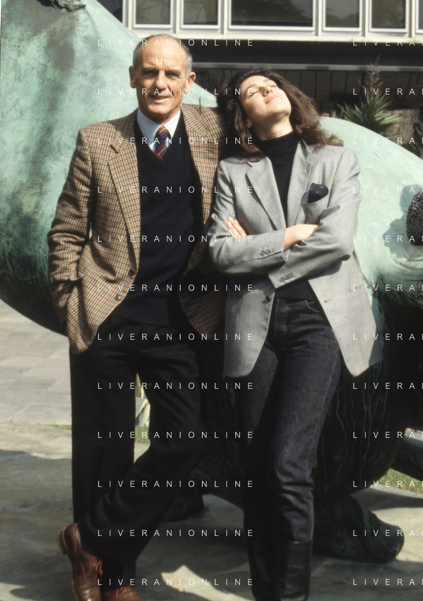 DIAP-RETROSPETTIVA PHILIPPE LEROY ATTORE NELLA FOTO PHILIPPE LEROY CON ALBA MOTTURA-PRESENTAZIONE IN RAI A ROMA DEL FILM“DUE ASSI PER UN TURBO“ ANNO 1987 FOTO EDGARDO DELLA SCORCIOSA-AG ALDO LIVERANI SAS