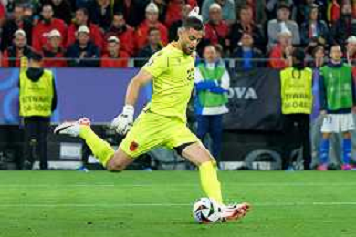 TVEM Thomas Strakosha of Albania during the UEFA EURO 2024 group stage match between Albania and Italy at Westfalenstadion on June 15, 2024 in Dortmund, Germany. Photo by Emmanuele Mastrodonato/ag. Aldo Liverani sas/AGENZIA ALDO LIVERANI SAS