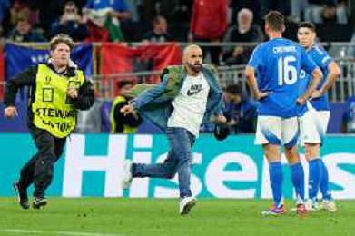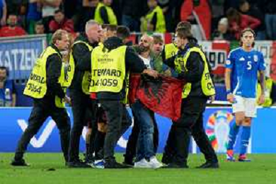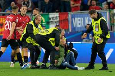 TVEM the stewards block a pitch invader during the UEFA EURO 2024 group stage match between Albania and Italy at Westfalenstadion on June 15, 2024 in Dortmund, Germany. Photo by Emmanuele Mastrodonato/ag. Aldo Liverani sas
