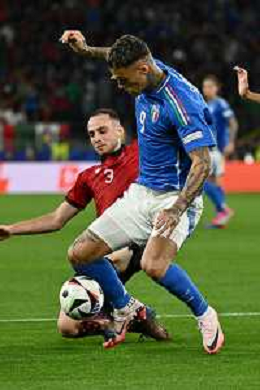 Italia vs Albania - UEFA EURO 2024 nella foto Gianluca Scamacca (Italia) e dietro Mario Mitaj (Albania) Dortmund (GER) 15-06-2024 BVB Stadion Dortmund Campionato Europeo di Calcio - UEFA EURO 2024 fase a gironi - gruppo B 1a giornata foto Roberto Garavaglia/Agenzia Aldo Liverani sas