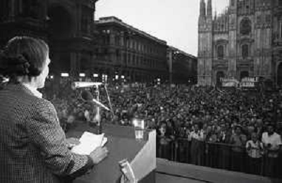 NEG-RETROSPETTIVA NILDE IOTTI POLITICA NELLA FOTO NILDE IOTTI AL COMIZIO A MILANO NELL'ANNO 1980 AG ALDO LIVERANI SAS