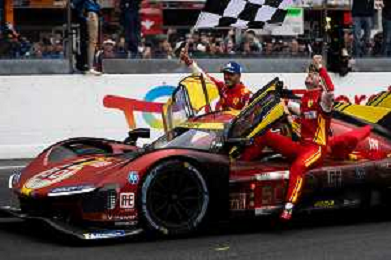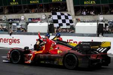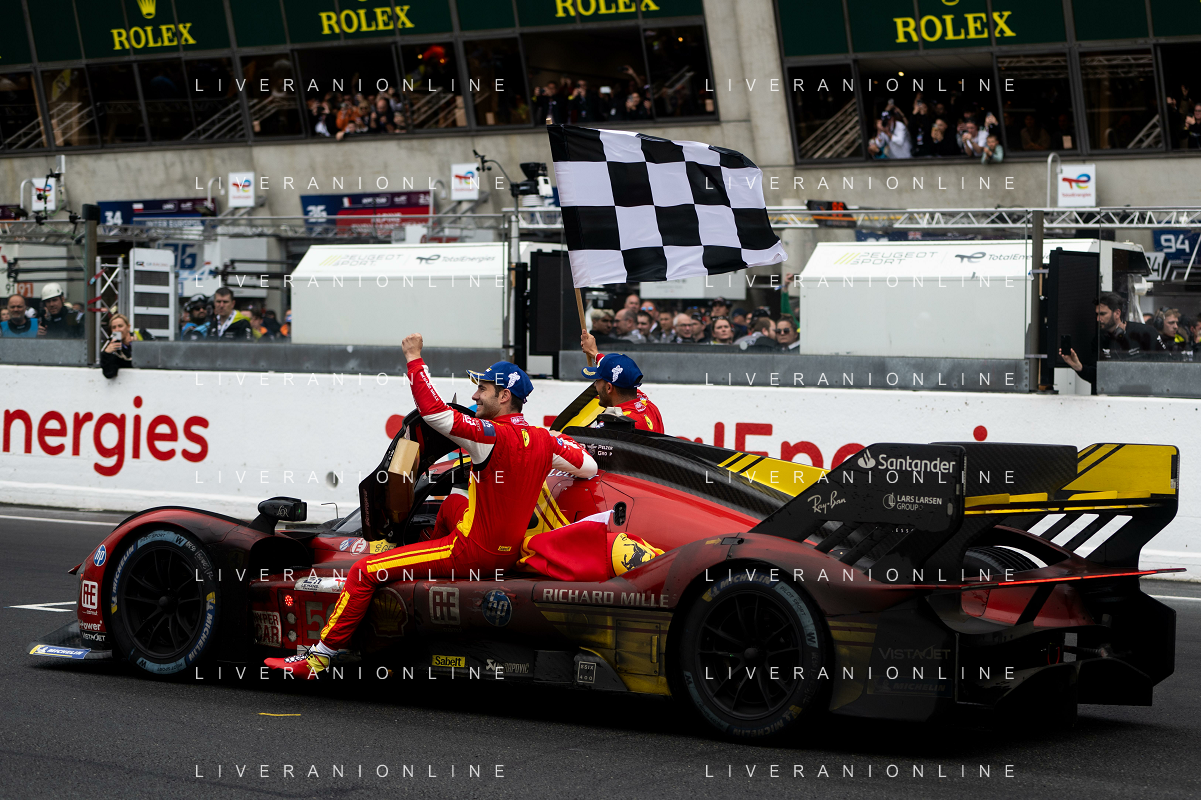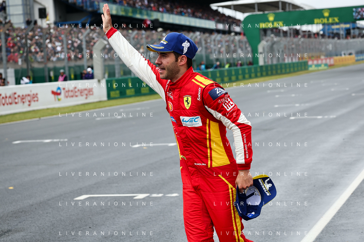 Race winner Miguel Molina (ESP) #50 Ferrari AF Corse, Ferrari 499P celebrates at the end of the race. 16.06.2024. FIA World Endurance Championship, Round 4, Le Mans 24 Hours, Race, Le Mans, France, Sunday. - www.xpbimages.com, EMail: requests@xpbimages.com - Copyright: Moy / XPB Images AG ALDO LIVERANI SAS-ONLY ITALY