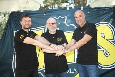 IMOLA 17-06-2024 PRESENTAZIONE DEL NUOVO ALLENATORE DELLA VIRTUS IMOLA BASKET SERIE B1 GIAN LUIGI GALETTI NELLA FOTO DA SINISTRA ANDREA ZOTTI TERZO ALLENATORE, AL CENTRO GIAN LUIGI GALETTI ALLENATORE E AKI ZARIFI SECONDO ALLENATORE FOTO GIANNI SANNA-AG ALDO LIVERANI SAS