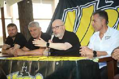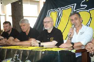 IMOLA 17-06-2024 PRESENTAZIONE DEL NUOVO ALLENATORE DELLA VIRTUS IMOLA BASKET SERIE B1 GIAN LUIGI GALETTI NELLA FOTO DA SINISTRA ANDREA ZOTTI, CARLO MARCHI, GIAN LUIGI GALETTI, AKI ZARIFI E GABRIELE TORREGGIANI FOTO GIANNI SANNA-AG ALDO LIVERANI SAS